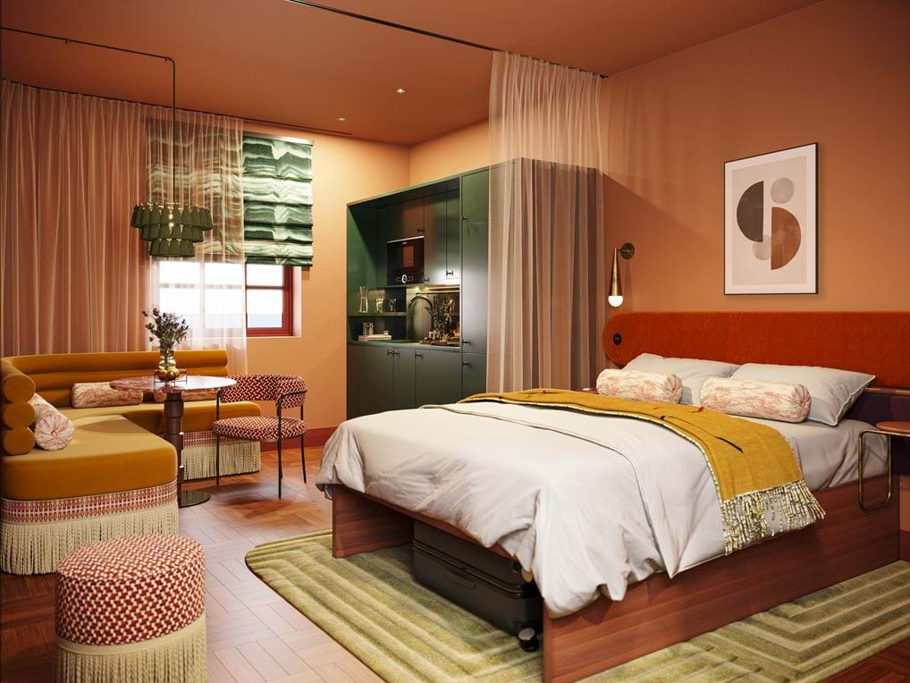 The hotel is being designed by London-based architects and designers Atelier Ochre, alongside interior design specialists House of Dré. Their mandate is to create beautiful, authentic, and liveable spaces for both hotel guests and the local community. Drawing inspiration from the iconic art deco style of Derry & Tom’s Department store and the golden age of Kensington, the design channels a glamorous mid-century aesthetic complete with ample green spaces and a carefully sequenced guest journey, with a contemporary approach which reflects the wants and needs of modern travellers.