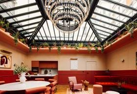 Enter through an original shopfront to discover the Begonia Suite, a 41m² duplex apartment with two floors of living space. Bespoke furnishings and vintage chandeliers combine with calming interiors and plenty of greenery. A 160cm x 200cm double bedroom, kitchen and sofa area linked by a sweeping curved staircase.