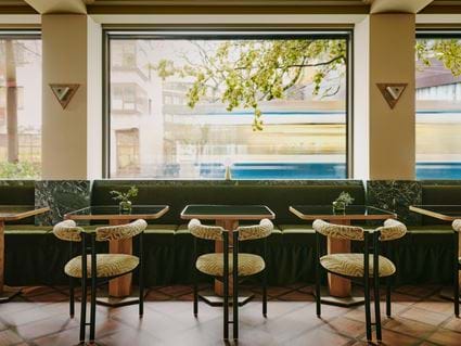 The coworking space, restaurant, and each of our 80 rooms are inspired by the playful elegance of the Swiss Riviera. Private balconies in many rooms give a glimpse of the city. Rich textures and bold fabrics contrast against the cooling blue waters of Lake Zurich.