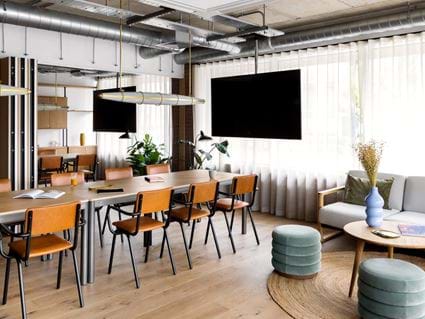 Comece ou converse com os outros. Conclua o seu trabalho nas nossas salas de reuniões especiais com espaço para até 24 pessoas.