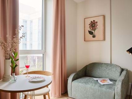 Espaço aberto. Acessível. E com uma espaçosa área de 28m2 para chamar de sua. Os nossos estúdios Locke acessíveis têm tudo para uma estadia tranquila em Cambridge.