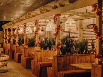 Pátio fantástico onde pode relaxar sob o sol de verão. Capacidade máxima: 200 pessoas em pé, 100 sentadas.